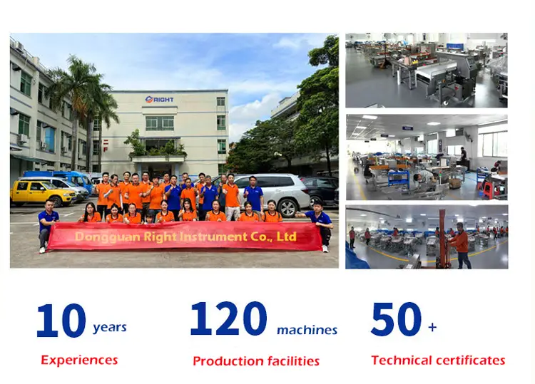 Dongguan Right Instrument Co., Ltd is specialize in designing, manufacturing and supporting inspection equipment used to identify contaminants and product defects within the food, packaging and pharmaceutical industries, principally offering Metal Detectors, Checkweighers and X-Ray Inspection systems.